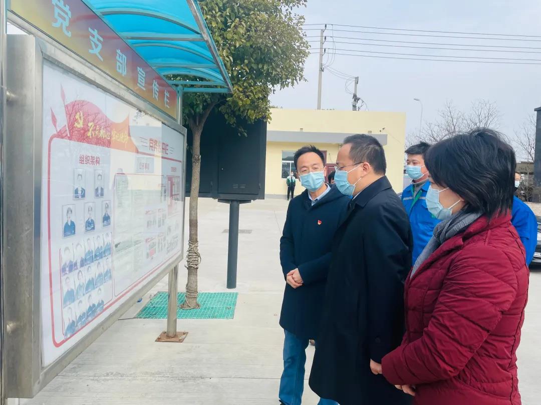 在公司黨建工作宣傳欄前,彭華龍向顧坤重點匯報了麒祥黨支部近年來發展情況、2021年的黨建工作及2022 年的黨建工作計劃,并重點介紹了具有支部特色的“五彩黨建”工作成果。顧坤說支部要始終不忘初心,組織好黨建工作,將黨建工作融合到企業經營中,起到引領促進發展的作用。