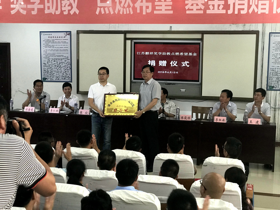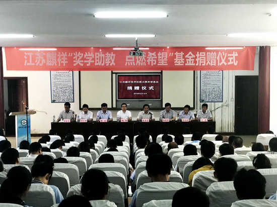 江蘇麒祥高新材料有限公司董事長姚翔代表江蘇麒祥向淮安范集中學捐贈10萬