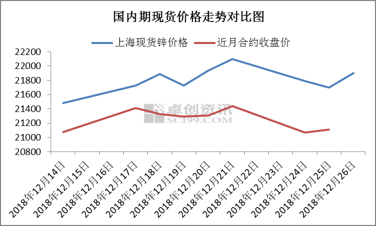 12月20日,卓創(chuàng)預測在現(xiàn)貨市場流通偏緊的情況下,鋅價有上漲可能。自12月14起,現(xiàn)貨市場流通貨量持續(xù)緊俏,升水一路走高,在期貨價格持穩(wěn)的情況下,現(xiàn)貨鋅價走高,截至12月26日,上期所滬鋅近月合約先漲后跌,價格與12月14日變化不大,微漲0.17%,現(xiàn)貨鋅價走勢與期貨走勢相近,但總體呈上漲趨勢,較12月14日漲420元,漲幅1.96%,遠超期貨漲幅。