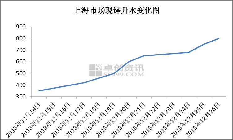 鋅市期穩(wěn)現(xiàn)漲的根本原因在于現(xiàn)貨市場流通貨量持續(xù)減少,現(xiàn)鋅升水不斷拉高,臨近年末,上海市場煉廠到貨量持續(xù)減少,社會庫存減少,持貨商挺價出貨,12月14日,國產(chǎn)鋅錠對1901合約主流報升水350-400元/噸,截至12月26日,國產(chǎn)鋅錠對1901合約升水漲至800-850元/噸,漲幅達128.57%。接貨商在長單需求結(jié)束后多數(shù)封賬停止接貨,下游畏高以剛需接貨為主,市場交投活躍度大幅下降。